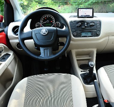 Funkcionálisan egyszerű kialakítása miatt a műszerfal villámgyorsan áttekinthető, az „anyósoldali” ablakemelő kapcsolóját leszámítva minden kézre esik, s a kezelés magától értetődő. Gondos a kidolgozás, a kapcsolók és kezelőszervek működése kifinomult, a tesztelt Citigo sötét-világos színvilágú és krómszegélyekkel díszített utastere pedig miniautós viszonylatban felettébb értékesnek számít – a csupasz lemezfelületek és a kopogós műanyagok teljesen általánosak ebben a kategóriában.