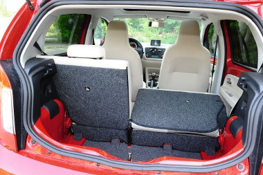 A háromajtós változathoz képest a csehek 113 030 forinttal kérnek többet a plusz két nyílászáróért, ennyit pedig igazán megér a hátsó utasok kényelmes ki- és beszállása. Egyébként a második sor helykínálata még felnőtteknek is elfogadható – legalábbis a magamra (175 cm) beállított vezetőülés mögött viszonylag jól elfértem, csak az ülőlapot találtam kissé rövidnek. Így aztán akár egy kiscsalád számára is megfelelő partner lehet a négyszemélyes Citigo, s még az útipoggyászt sem kell otthon hagyni: alapesetben 251 liternyi cuccal számolhatunk, de az osztottan dönthető támlákkal bovíthető a csomagtér.