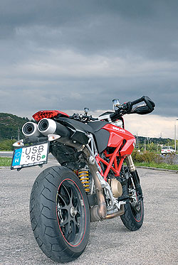 Ahogy az lenni szokott, a Ducati szakemberei most is egyedülállót alkottak. A szemérmetlenül csupasz, térhálós csővázra épülő tűzvörös Hypermotard nemes egyszerűséggel szexi, s ez garantált sikert jelent a világ minden táján. Vaskos első sárvédője, pajzs alakú lámpája, valamint ülés alatt elvezetett kipufogói csak úgy vonzzák a tekinteteket, s a bűvölet bizony mindkét nemre hatással van. Ráadásul a meztelen szerkezet olyan műszaki megoldásokat tesz a kirakatba, mint a 90 fokos hengerszögű, léghűtéses L2-es Desmodromic erőforrás (a Ducati nem V, hanem L2-esként aposztrofálja blokkjait), a kovácsolt Marchesini alumíniumfelnik vagy az egykaros hátsó lengővilla. Teljes K.O!