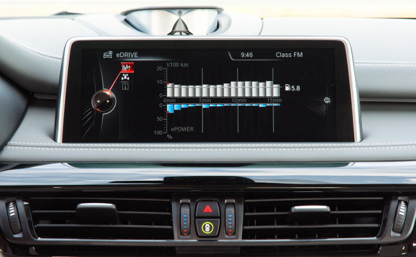 A konnektorból tölthető hibridek előnyét nem kell magyarázni: sokkal nagyobb kapacitású akkucsomaggal rendelkeznek, mint a „normál” hibridek, ez nagyobb teljesítményű villanymotor használatát teszi lehetővé. A BMW X5 xDrive40e esetében ez egészen pontosan azt jelenti, hogy a 113 lóerős elektromotor akár 120-as tempóig is gyorsíthatja a 2,2 tonnás testet, ami elsőre szürreális, hiszen egy hatalmas SUV-ben ülünk, amely mindössze a bal oldali első sárvédőn elhelyezett töltőnyílással különbözik a többi X5-östöl. A 250 Nm-es nyomaték okán városban könnyen tarthatjuk a forgalom ritmusát, ha pedig kifogyna a szufla a lítium-ion akkuból, vagy egy előzéshez szükség van a benzinmotorra, hibridként üzemel tovább az autó (lemerült akkumulátorral a villanymotor teljesítménye 75 lóerőre csökken).