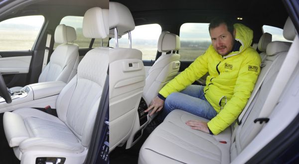 A korábbinál jobb felbontással, élesebb képpel szolgálnak a műszerfal monitorai, azonban kihagytak egy ziccert azzal, hogy a kormány mögöttinél érdemben nem lehet változtatni a megjelenést, például nagyban kirakni a térképet. Nem lehet belekötni a választott anyagokba és a minőségérzetbe, de a feláras kristály váltókarnak és iDrive kezelőszervnek az egyszeri meglepetésen túl nincs érdemi hatása. Annál inkább meglepő, hogy szűk a második sor térkínálata, egy ekkora méretű autótól nem csak átlagos helykínálatot várnánk el, ráadásul az első támla hátfala kemény műanyag, akinek térdben szűk a hely, annak már a rövid utazások is fájdalmasak lehetnek. Típusjellegzetesség a vízszintesen kettéosztott csomagtérfedél, az alsó rész miatt vagy magas rakodóperemmel szembesülünk, vagy messzire kell nyújtózkodni a hatalmas raktér tartalmának eléréséhez.