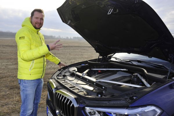 Forszírozott tempóban az összkerékkormányzást kell szokni, amikor kanyarvétel közben egy úthiba miatt ráterhel az autó az ívkülső kerékre, a nem egyenesen álló gumi miatt nemcsak berugózik, de egy kicsit oldalirányban is megrándul a karosszéria; nem veszélyes, de elsőre minimum meglepő. A 400 lóerős dízelmotor a tőle elvárható fölényességgel mozgatja az X5-öst, ehhez képest a 10,5 l/100 km-es tesztfogyasztása nem vészes, a hangja mérges doromboláshoz hasonlít.