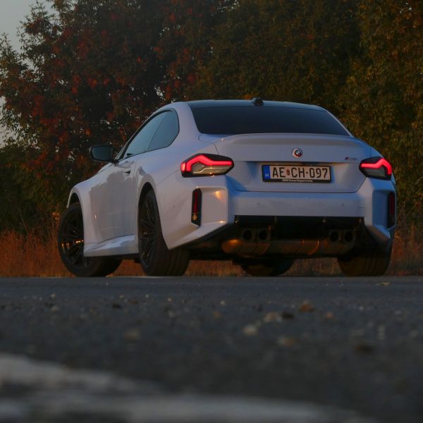 Tesztünk apropóját az adja, hogy az M3/M4-es hajtását és felfüggesztését is megörökölte a kistestvér, ami nem múlt el nyomtalanul: erősen ki kellett szélesíteni a kerékjáratokat, de az ilyesmi amúgy is része ennek a műfajnak. Az eredmény a második generációs M2-es, amelyről nyugodtan mondhatjuk, hogy az egyik legizgalmasabb kompakt autó a piacon, és nemsokára már kézi kapcsolású váltóval is elérhető lesz (felárat kell majd fizetni érte…). Mi még a 8 fokozatú automatával próbáltuk, és nem panaszkodtunk.