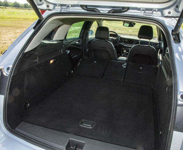Abban az átmeneti évben járunk, amikor megérkezett az új Astra kombi, az egy kategóriával nagyobb Insigniát pedig még nem váltották le. Előbbi bizony jobb kombi: a csomagtér ugyanúgy 540 literes alaphelyzetben, bővítés után már a kisebb Astra vezet 100 literrel, a terhelhetőség gyakorlatilag egyforma, miközben a kompaktautó saját tömege 200 kg-mal alacsonyabb. Ráadásul nem csak méret tekintetében tud többet az Astra Sports Tourer, de a szolgáltatásaiban is: a csúcsfelszereltségű tesztautónál az elektromos csomagtérajtó-mozgatást a jobb oldali tolatóradar-érzékelő alatti láblendítéssel is lehet aktiválni, a hátsó támlák az oldalfalon elhelyezett gomb nyomására dőlnek le, nem kell előremenni ehhez és a mechanikus rögzítéssel vesződni. A raktérpadló alatti fiókban pótkerék utazik, ránézésre annak sincs akadálya, hogy teljes értékű kerék is elférjen, a tesztautóban szükségpótkerék volt.