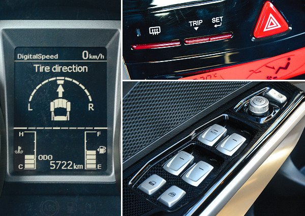 Apró figyelmesség a kerékállás-kijelző. A technika meggyőző, a körítésen lehetne javítani