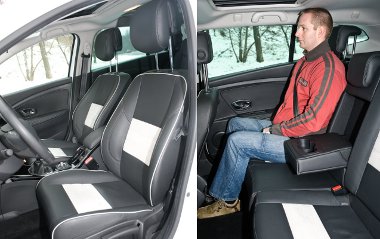 Mivel a Mégane kombi hosszában 264, tengelytávolságban pedig 60 mm-rel múlja felül az ötajtós ferdehátút, az utasok is kényelmesen elférnek. A műszerfal letisztult és határozottan tagolt, így aztán könnyedén áttekinthető, éppen ezért érthetetlen, hogy a TomTom navigáció kezeléséhez miért van szükség egy rakat gombra… Ha már itt tartunk, az ülésfűtés (az ülőlapok oldalán) kapcsolójának, illetve a sávelhagyásra figyelmeztetést és az automata fényszóróvezérlést kombináló Visio rendszer gombjának elhelyezése (a belső tükör mögött, a szerkezet dobozán) is kifogásolható. A felhasznált anyagok minősége többnyire rendben van, a kidolgozás azonban helyenként kívánnivalót hagy maga után.