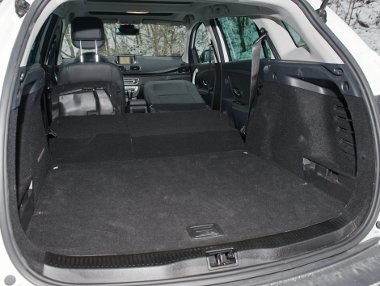Ugyanakkor a használhatóságot és praktikumot sikerült közös nevezőre hozni a designnal: az ötödik ajtó mélyről nyílik, így alacsony küszöbön és tágas nyíláson keresztül, kényelmesen pakolhatunk a csomagtartóba. A 491/1567 literes befogadóképesség ugyan nem kategóriaelső érték, ám a gyakorlatban temérdek holmit képes elnyelni a jó formájú raktér. Viszont a bővítés körülményesebb a kelleténél, hogyha a 60:40 osztású támlák ledöntése előtt nem hajtjuk fel az ülőlapokat, nem lesz sík a padló. Előrebuktatható azonban az anyósülés támlája is, ezután akár 2,55 méter hosszú tárgyakat is szállíthatunk.