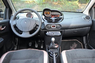 Belül is tocsog az autó a rózsaszínben: az üléshuzat, a cérna színe, a kapcsolók, a vezetőoldali ajtóhímzés, a kilincsek és a padlószőnyegek. Olyan a Twingo, mint egy rózsaszín cukormázas, gejl mignon: nagyon könnyen elcsapja vele az ember a gyomrát.