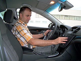 Elindulunk. Az Insignia prototípusában egy 2,0 literes, benzines turbó 200 lóerővel, hatfokozatú manuális sebességváltóval és a menetdinamikai karaktert megváltoztató sportprogrammal. Reuter főmérnök az anyósülésről kérdésekkel bombáz, előttünk egy “felvezető” Signum, mögöttünk egy Zafira – csak a rend kedvéért… Kényelmes tempóban haladunk, néhány falucska után autópálya-szakasz következik. Mintegy 70 kilométert követően vissza is kanyarítanak a bázishoz, az időm lejárt, ennyit mára a technika újdonságaiból (á’ la Delta).
