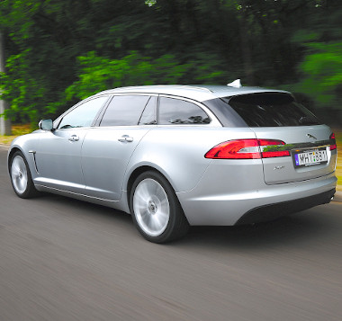Ugyanakkor vezetés közben kellemes meglepetés ért, ez a Jaguar ugyanis a vetélytársaihoz viszonyítva nagyon is közvetlennek hat. Direkt kormányzás és feszes futómű szerezhet kellemes perceket a sofőrnek, mondom ezt annak ellenére, hogy a tesztautóban 163 lóerős motor munkálkodott. Az XF Sportbrake-hez nem választhatunk benzinmotort, vagyis le kell mondanunk a limuzin V6-os (340 LE) és V8-as (510 és 550 LE) kompresszoros erőgépeiről, helyette a 2,2-es dízel 163 vagy 200 lóerővel, illetve a 3,0 literes, V6-os gázolajos áll rendelkezésre – utóbbi 240 vagy 275 lóerős lehet. Azonban bármennyire nem tűnik soknak a 163 lóerő, a PSA-eredetű egység 400 Nm-es nyomatéka elegendő erőtartalékkal ruházza fel az autót, s aki nem akar a német autópályán 200 felett száguldani, annak ez is bőven megteszi.