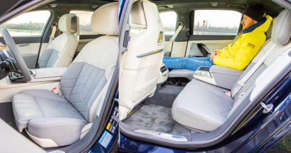 És az új? Tényleg nagyon más! Lehet, hogy a 7-es BMW tulajdonosok megköveznek, de nekem az a határozott véleményem, hogy az utóbbi két generációnál az 5-ösök és 7-esek között a szolgáltatások és a komfort terén már nem volt drámai különbség. Most nagyon más a helyzet. Az új 7-es krémes, nagyon lágy, döbbenetesen finom és nem akar sportos lenni. A gombnyomásra, motorosan nyíló ajtókról, a kormányzásról és a légies, ringatózós rugózásról nem is az előd ugrott be, hanem a Rolls-Royce Ghost. Nyilván nem véletlen, hiszen szegről végről rokonok, de mégiscsak egy újszerű BMW-élményt élhetünk át. Főleg, hogy a tesztautó esetében elektromos hajtásról beszélünk. Nekem személyesen kicsit fáj, hogy nincs már V12-es verzió, és Európában még V8-as sem, azért meg kell hagyni, hogy a kétmotoros, 5. generációs elektromos rendszer tökéletesen illik egy ilyen karakterű autóba. Az erőlködés legkisebb jele nélkül gyorsít, és ha kell, az 544 lóerős teljesítménnyel igazi térugrásra képes. Mindezt megfejelték a Hans Zimmer zeneszerző által komponált mesterséges hanggal – utóbbi tekintetében is igazi élményt ad az i7-es.