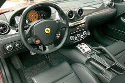 is. Hatékonysága, tehát az egységnyi súlyra számított torziós merevség, egészen kiváló. A motort az első tengely mögé építik be, a váltómű a differenciállal képez egységet, ezáltal a két tengely közé került az autó tömegének 85 százaléka. Hátul, a 320 literes, szabályos alakjának köszönhetően jól kihasználható csomagtartó mellett, maradt hely 105 liternyi benzinnek, amely bő 400 kilométerre elegendő. Rendes kesztyűtartó, két kis ajtózseb és jókora kalaptartó egészíti ki a pakolási lehetőségeket – az 599 Fiorano akár mindennapi járóautónak is kifogástalanul megfelel.