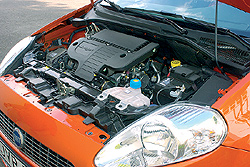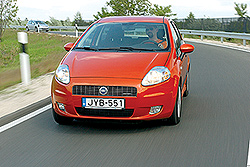 fokozatban ez a sáv kilencvenes tempónál kezdődik, tehát országúton nem kell minduntalan a rövid úton és kis erővel kapcsolható, de pontatlansága miatt határozott kezet igénylő váltó karjához nyúlni. Igazán kellemetlenné városban válhat a motor karaktere: lámpától indulva olykor a magas alapjárati fordulatszám ellenére is hosszan tartó fulladási roham jön rá, majd 2200-nál kitisztul a torka és parittyaként lövi előre az autót – ez sem elegánsnak, sem biztonságosnak nem nevezhető. A dízel további járulékos hátránya, hogy az eleve nehéz autót még súlyosabbá teszi, ráadásul aránytalanul növeli az első tengely terhelését. Talán ennek is tudható be, hogy a Punto a teszt során mindvégig távolságtartóan viselkedett. Ez sztrádán autózva kellemes és pihentető, de kígyózó országúton tompának, nehézkesnek hat. Hibátlanul megy végig a kijelölt útvonalon, néha mintha még élvezné is, de figyelme legtöbbször elkalandozik – talán a tömegnövekedés pozitívabb következményein, a kényelmes rugózáson és az ötcsillagos törésteszteredményen elmélkedik. Vagy azon, hogy egy hárommillió forintért kínált tágas, dízelmotoros, Giugiaro-öltönyös ötajtóssal szemben végül is emelhetünk-e bármilyen érdemi kifogást?