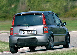 Annál szebb jövő előtt áll a széria izomgolyója, a 2007-es modellévre előirányzott, de már most megvásárolható 100 HP. Az Emotion kivitelre épülő autóban bőrkormány és ködlámpa is található, de nem ezek teszik sportos modellé. Fontosabb alkatrészei a négy tárcsafék, az áthangolt futómű, az ekkora autón pályagumiknak tűnő 195/45 R15-ös abroncsok és a Grande Puntóból átemelt, plusz öt lóerővel felduzzasztott 1,4 literes 16 szelepes motor. Hengerűrtartalma és 100 lóereje révén persze még nem vérbeli sportmotor, de mivel csak 975 kg-ot kell vonszolnia, egész kellemes hajtást biztosít a Pandának. 0-ról 100 km/óráig 9,5 másodperces sprint és 185 km/órás végsebesség számszerűsíti képességeit, a motor szorgalmasan pörög, de korántsem vérmes, s egy pillanatig sincs olyan érzésünk, hogy ne férne el még 30-50 lóerő a motortérben. A sportfutómű hangolása legalábbis olyan jól sikerült, hogy ezt feltételeztük. Talán majd később, egy Abarth-változatban megkapjuk…