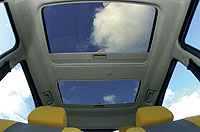 Az utastér szürkeségét élénk színű kárpitozás teszi vidámabbá. Jól kézre esik a sebességváltó középkonzolra helyezett karja, a mellette található ablakemelők azonban ergonómiai szempontból nem a legszerencsésebbek. A helykínálat elöl kedvező, míg hátul a csúsztatható második üléssor segítségével – a csomagtartó rovására – elfogadható méretűre növelhetjük a lábteret. Amennyiben méretesebb tárgyat kívánunk szállítani, tovább variálhatjuk a bútorzatot, hiszen az üléstámlák ledönthetők, így a poggyásztér egészen 855 literig növelhető. Néhány hasznos pakolórekeszről gondoskodtak a tervezők, ellenben az anyósülés alól kihúzható tálca 15 ezer forintos opció.