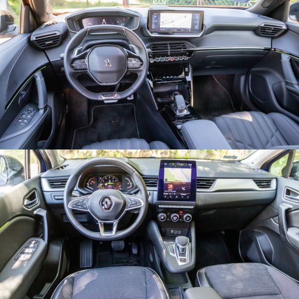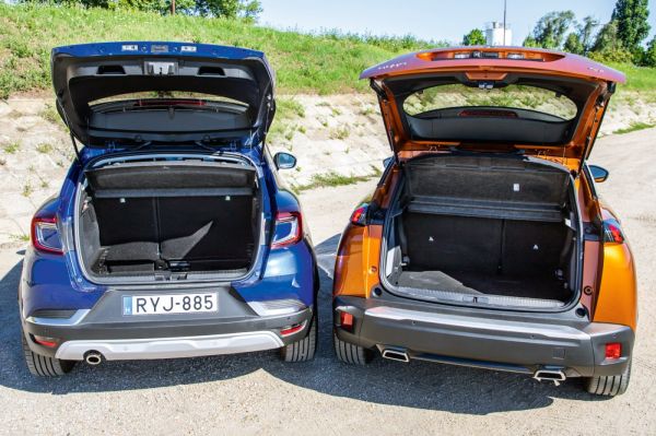 A felépítésbeli különbségek nyomot hagytak a használhatóságon is, a Peugeot-t ugyan csak egy árnyalatnyival találtuk tágasabbnak. Ez elsősorban az alacsony üléspozíciónak köszönhető, a Renault-ban jobban érvényesül a szabadidő-autós jelleg. Lábtérben minimális a különbség a 2008-as javára, ahogy a csomagtartó is éppen csak nagyobb néhány literrel. A Captur sínen tologatható hátsó ülése a márka hagyományainak része, és jól jöhet, ha a lábtér kárára növelnénk a raktér méretét, viszont a mozgatása – főleg a csomagtartóból – kissé körülményes, és a különbség sem óriási. Pakolásnál a Peugeot-ban alacsonyabbra kell emelnünk a csomagokat, és a rakodónyílás is szélesebb. Továbbra is jó megoldás a Renault fiókszerűen kihúzható, nagyméretű kesztyűtartója, feltéve, ha éppen nincs útban az utas lába. Mindkét autóról egyformán elmondható, hogy kisebb családoknak is megfelel a helykínálatuk, így viselhető kompromisszumokkal egyetlen autóként is használhatók.