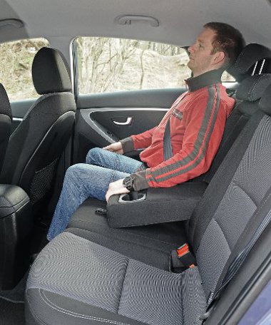 Az i30-as kapcsán nem mehetünk el szó nélkül amellett, hogy a változatlan, 2650 mm-es tengelytávolság ellenére a vezető és az elöl ülő utas 30 mm-rel tágasabb fejteret, 11 mm-rel nagyobb lábteret és plusz 14 mm vállteret kap. Hátul sem rossz a helyzet: az i30-as – ha nem is a legtágasabb a szegmensben – az átlagot mindenképpen felülmúlja. Ha ide is jutott volna szellőzőrostély (csak a csúcsverzióhoz jár), s ha a könyöklő nem hajlana le az ülőlapra, azért jobb lenne a helyzet, de az ülések az elsőkhöz hasonlóan itt is kifogástalanok.