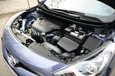 Az új i30-as esetében is minden bizonnyal a benzinmotorok lesznek népszerűek, aki viszont kis lökettérfogatú, turbós egységet szeretne, azt ki kell ábrándítanom, ugyanis kizárólag atmoszferikus erőforrások szerepelnek a benzinesek között. Van 100 lovas 1,4-es és két 1,6-os (MPI 120 vagy GDI 135 LE), s meg kell hagyni, a tesztautónkban munkálkodó „középső”, szívócső-befecskendezéses egység egyáltalán nem rossz választás, annak ellenére, hogy nem sorolható a high tech gépezetek közé. Élénken veszi a gázparancsot, de nemcsak szereti, hanem igényli is a pörgetést, mert a nyomatékmaximum viszonylag későn jelentkezik. Átlagos használat mellett nem hiányzik az erő, de amikor autópályára hajtunk, jól jönne, ha kicsivel rugalmasabb lenne. Pedig a hatgangos kézi váltó (az összes i30-asnál széria) fokozatai nem túl szellősek, 60-nál már nyugodtan felkapcsolhatunk hatodikba.