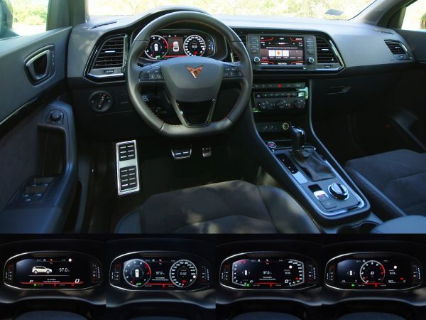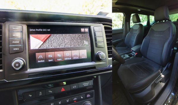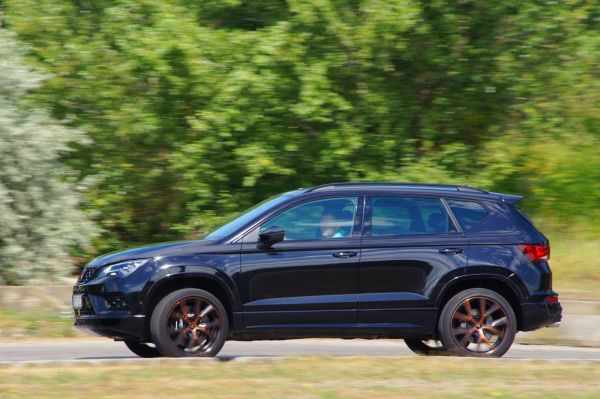 Ez a méretosztály amúgy számomra kissé nehezen értelmezhető, ahhoz magasan van, hogy igazán sportos legyen, ahhoz viszont nem elég tágas, hogy öt személlyel is jól kihasználhatóvá váljon, ráadásul a négykerékhajtás miatt tovább csökken a raktere és a helykínálata is. A gyakorlatban igazából egy négyszemélyes sport-SUV, bármit is mondjanak a katalógusok. A Cupra Ateca alapvetően egy magasépítésű GTI, ami nagyon feszes futóművet és hatalmas, 19 colos kerekeket kapott 245/40-es gumikkal. Az alapváltozathoz képest csak 4 milliméterrel került közelebb az aszfalthoz, ám még Comfort fantázianevű állapotában sincs köszönőviszonyban a nevével – a rugózás/lengéscsillapítása piszkosul feszes a hétköznapi autózáshoz, mindennapi használatban. Persze minden csak viszonyítás kérdése, így ha az ember a Sport és a Cupra üzemmódból kapcsol vissza ide a központi érintőképernyőről vagy a tekerőkapcsolóról, mindjárt komfortosabban érzi magát. A viccet félretéve, ha csak ez lenne az egyetlen hangolási mód, akkor is brutálisan keménynek érezné az ember, ha nem kizárólag tükörsima aszfalton közlekedik minden nap.