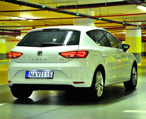 Amikor tavaly decemberben egyeztettük a cikkünkben látható, maratoni tesztprogramot futó Leon konfigurációját, Papp Zoltán Seat-márkaigazgató azonnal rábólintott kérésemre: „az 1,6-os TDI legyen, mégpedig a hétfokozatú DSG-vel, fehér ötajtós kasztniba csomagolva” – majd rögtön indokoltam is a kívánságlistát. A fehér szín igen jól áll a Leonnak, a frontnézet nagyon vagány a nappali menetfény LED-es karaktervonalával, a praktikus csapott hátú kocsiszekrény pedig általánosan népszerű. Vacilláltunk ugyan a kombin (ST) is, a hajtáslánc műszaki érdekessége azonban vitán felül „átment”. A felszereltség ez esetben csak a középutat képviselő Style lehet, lefelé-felfelé már nem lehet összeállítani ezt a motor-váltó kombót.