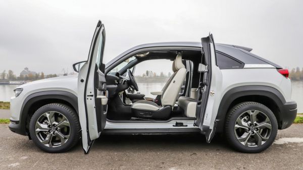 Izgalmas utat járt be a 100. évfordulóját ünneplő Mazda. A parafagyártással foglalkozó cég először a szerszámgépek, majd a személyautók felé fordult, és mindig arra törekedett, hogy különbözzön a többi japán márkától. Ezt tették, amikor klasszikus dugattyús helyett Wankel, vagy amikor kis lökettérfogatú turbós helyett nagyköbcentis szívómotort terveztek. Amikor a legújabb európai környezetvédelmi előírásoknak csak úgy lehet megfelelni, hogy minél több tisztán elektromos autót értékesítenek, hiába dobták piacra a szikravezérelt öngyulladással működő, lágyhibrid Skyactiv-X benzinmotort, szükségük volt egy piacképes villanyautóra. A Mazda ezúttal sem állt be a sorba, sem a túlsúlyos szabadidő-autók, sem a városi kisautók kínálatát nem gyarapította, inkább bemutatott egy frappáns crossovert. A japánok tisztában vannak vele, hogy az akkumulátortechnológia jelenleg még nincs összhangban az átlagos vásárlói igényekkel, ezért egy kiskapacitású akkumulátorral szerelték fel, amely a városban megtehető, rövid távokhoz elegendő energiát képes tárolni, ezzel együtt kisebb tömeget és rövidebb töltési időt garantál. Ehhez nem volt szükség praktikus utastérre, viszont a magas ára miatt fel kell mutatnia valami vonzót a hasonlóan drága riválisokkal szemben. Ebben a szellemben dolgoztak az MX-30-ason, amely vegyíti az MX-5-ös szellemiségét a CX-30-as méreteivel.