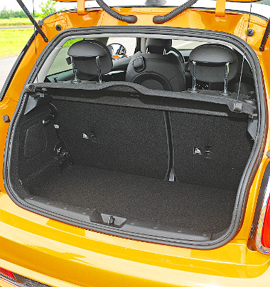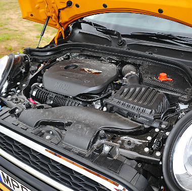 Hátul még mindig szűkös A BMW számos modelljéhez évek óta kapható 2,0 literes blokk (valószínűleg ez hajtja majd a később érkező John Cooper Works csúcsmodellt is) a motorépítés magasiskoláját képviseli, hiszen közvetlen befecskendezést, változó szelepvezérlést és kettős leömlésű turbófeltöltőt is felvonultat. A lényeg azonban, hogy a 192 lóerős egység nagyon energikusan viszi a kis testet. Mivel 1250-es fordulattól lehívható a maximális nyomaték, gyakorlatilag a turbólyuk ismeretlen fogalom, ráadásul, mint valami óriási szívómotor esetében, alig kell pörgetni a haladáshoz. Az ideiglenes túltöltéssel 300 Nm-t hadrendbe állító egységgel minden fokozatban rugalmas a Mini, és az sincs ellenére, ha rendesen forgatjuk, mert sok turbómotorral szemben magas fordulaton sem fogy ki a szuszból.