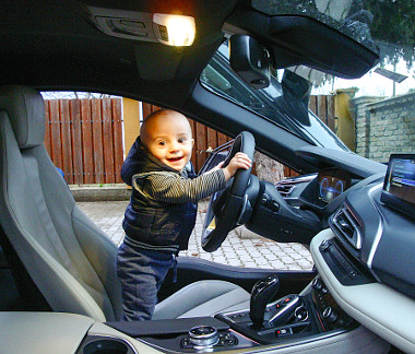 Természetesen élveztem a rövidke együttlét minden percét, méterét, az érdeklődő vizitet a szomszédoktól, és a csodálkozó pillantásokat 11 hónapos kisfiamtól! Igen, ez is fontos, hiszen a bajorok autójának szellemisége sokkal inkább az ő generációját kíséri majd el, a legifjabb nemzedéknek magától értetődő lesz ez az egész – én addig is nosztalgiázom egy jó kis sorhatos hangjával és produkciójával. Nem kérdés persze, hogy a BMW remek „időgépet” alkotott az i8-assal, ami ennek megfelelően meg is előzi korát, mi pedig örülhetünk, hogy az olcsó autózást áhító időkben részesei lehetünk egy kis közúti sci-finek.