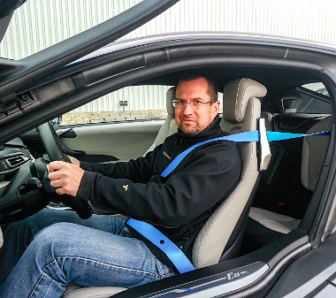 Gyakorló középmotoros sportkocsi-tulajdonosként (1984, Talbot-Matra Murena) a vezetőülésben helyet foglalva rögtön az tűnt fel, hogy milyen magas is ez az autó: nem a padlón ülök, és viszonylag egyenes derékkal. Ez eddig rendben van, csak épp az idáig eljutás nem volt egyszerű mutatvány. Amíg például az Opel Speedsternél megoldható a „támaszkodok az ajtón és a karosszérián, majd belecsusszanok a lábtérbe” mozdulatsor, itt ez a felfelé nyíló ajtó miatt nem megy. Sőt, az ajtó megakadályozza azt is, hogy az autó mellett állva kezdje meg az ember a leereszkedést. Muszáj hátulról, limbózva támadni az utasteret, ami nálam igen furcsán nézett ki, míg például egy szoknyát viselő hölgynek szinte kivitelezhetetlen szeméremsértés nélkül.