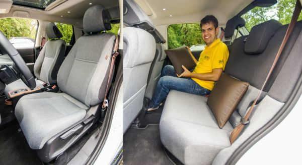 Minderről a nappalihoz hasonló kialakítás gondoskodik. A modern kanapékat idéző kárpitozás, a hátsó ülésen elhelyezett párnák, a fapolcokra utaló díszbetétek, a barna biztonsági övek, a médialejátszót vagy akár játékkonzolt is kezelő bemenetek, a légies tér és a sík padló is ezt a bensőséges hangulatot erősítik. Bár általában bonyolítja az autó kezelését, az e megoldását hamar meg lehet szokni, a szellőzés például továbbra is saját, fizikai gombokkal szabályozható, a két kijelzőn csak a multimédiás funkciók jelennek meg, és a jól áttekinthető menünek hála azok is jól kezelhetők.