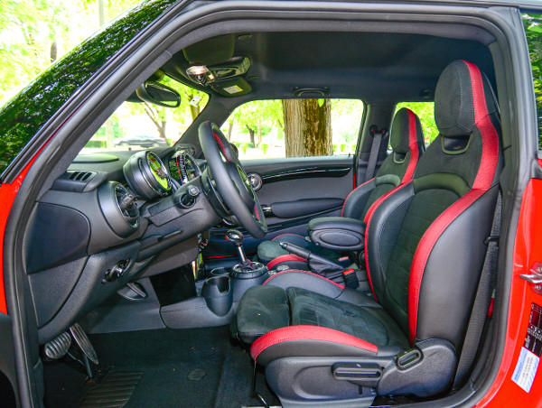 Egyébként nem követel sok kompromisszumot a Mini JCW, már ha eltekintünk a jelképes hátsó sortól és a szerény méretű csomagtartótól, bár nem hinném, hogy a vásárlóközönséget ez különösebben izgatja. A határozott oldaltartású sportülések hosszú úton is kényelmesek, a morgós hang ellenére pedig csekély a zajterhelés, így két fő nem csak gyorsan és stílusosan, hanem a vártnál nagyobb komfortban utazhat a JCW-ben.