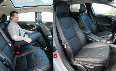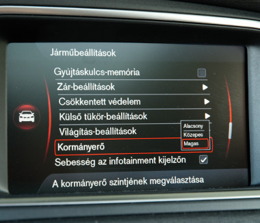 Normál esetben a kocsi elöl hajt, de a kerekek tapadásvesztése esetén az elektrohidraulikus szerkezet gyorsan hátra csoportosítja az adott helyzetnek és vezetési stílusnak megfelelő nyomatékot. A téli gumival felszerelt tesztautó a gyakorlatban mégsem sínautósan viselkedett, hanem eloször alulkormányzottá vált és elkezdte tolni az orrát, majd a feneke csak ezután kapaszkodott meg és térítette vissza a helyes irányba. Ha ilyenkor van bátorságunk tovább „állni” a gázpedálon, szemtelen kanyarsebességekre képes a Volvo. Ebben az opciós 18 colos alufelnikre húzott 245/45-ös abroncsok is segítik, a meglehetősen feszes hangolású futómű pedig kordában tartja az emelt karosszéria oldaldőlését – a rugózás viszont nem egy leányálom a hazai utakon.