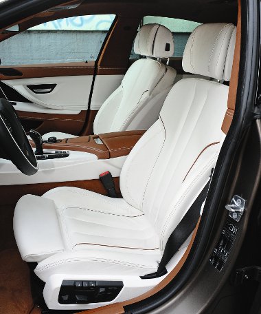 A vezetési pozíció sportosan mély, a 6-os sorozatból ismert műszerfal szemrevaló és jól átgondolt, a belső hangulat esetünkben mégsem tipikusan BMW-s. Az Individual belső ugyanis hamisítatlan luxusautós környezetet teremt: szinte mindent nemes bőrkárpit borít, még a tetőt is alcantarával húzták be, a barna-fehér színkombináció pedig nemcsak az autó fényezéséhez, hanem egymáshoz is remekül illik. Pazar a látvány, de borzasztóan kényesek és könnyen koszolódnak a hófehér felületek.