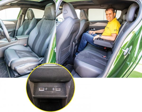 Nem használja ki a nagyméretű digitális műszeregységben rejlő lehetőségeket az Opel, látványosabb, vagy csak színesebb grafikát is szívesen látnánk itt – talán azért, mert az analóg környezetet is a szürke különböző árnyalatai határozzák meg. A központi érintőképernyő kezelését gyorselérést lehetővé tevő kapcsolók könnyítik. Az ülések közötti konzolon fedett tárolók, illetve a váltó- és az üzemmódvezérlő kapcsolói helyezkednek el, utóbbi lehetne hangsúlyosabb, hiszen akár menet közben többször is vált a sofőr, míg a haladási irányt csak néha kell megváltoztatni. Igazán a kompakt kategóriában szűk második sor az, ami miatt kompromisszumot kell kötni, nagyra nőtt tinédzsereknek már kevés lehet a lábtér, amire a kombi karosszéria a megoldás.