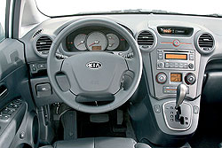 Érthetetlen, hogy a hétüléses verziónál miért nincs kalaptartó. Ehhez nincs mit hozzáfűzni… Ízlés dolga továbbá, mindazonáltal az alapvetően tetszetős vezetői környezetből kissé kilógnak a szimpla bajuszkapcsolók, a fantáziátlan fő műszeregység és a korai 80-as évek kvarcóráit idéző fedélzeti műszer. Az utóbbi mellé biggyesztett, matricahatású, az utas biztonsági övének becsatolására figyelmeztető „PASSENGER” felirat pedig egyenesen bóvli. Ezen apróságok pótlása, cseréje egészen biztosan sokkal többet hozna a konyhára, mint amennyibe kerülne. Ha pedig eleve igényesebb részletekkel és kisebb motorokkal lépett volna színre a Carens II, még kevesebb wont, dollárt és eurót kellett volna költeni.