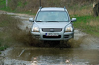 Jóllehet, a tulajdonosok többsége el sem hagyja majd a kiépített utat, mi azért lelkiismeretünk megnyugtatása érdekében enyhe terepen is kipróbáltuk a Kiát – hátha alkalomadtán elviszik a családot egy piknikezésre. A Bükk erdei csapásain meglepő magabiztossággal mozgott az autó, a kőzúzalékos, avagy a felázott földúton remekül vette az akadályokat. Amikor kissé szorult helyzetbe kerültünk, elegendő volt a „4WD Lock” gombbal rögzíteni a hajtóerő 50/50 százalékos tengelyek közötti elosztását – ez egyébként 30 km/órás sebességig menet közben is kapcsolható. Alaphelyzetben az első kerekek hajtottak, s az elektronika csak ezek kipörgése esetén juttat a forgatónyomatékból hátulra. A 195 milliméteres szabadmagasság, valamint a 28,8 fokos első és 28,9 fokos hátsó terepszög lehetővé teszi közepes bakhátak, valamint kisebb kövek