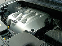 komfortérzetet. A tekintélyes önsúly és az összkerékhajtás persze alaposan megnöveli a fogyasztást, tesztünk során átlagosan 10,7 litert gurított le a torkán a Kia. Az ötfokozatú sebességváltó karja hosszú utakon jár, a megvezetése lehetne határozottabb, míg az ultraérzékeny gázpedállal ellentétben a kuplung és a fékpedál túlzottan puha – utóbbinál a nyomáspont nehezen kitapintható, és a határozott lassuláshoz becsülettel taposni kell.