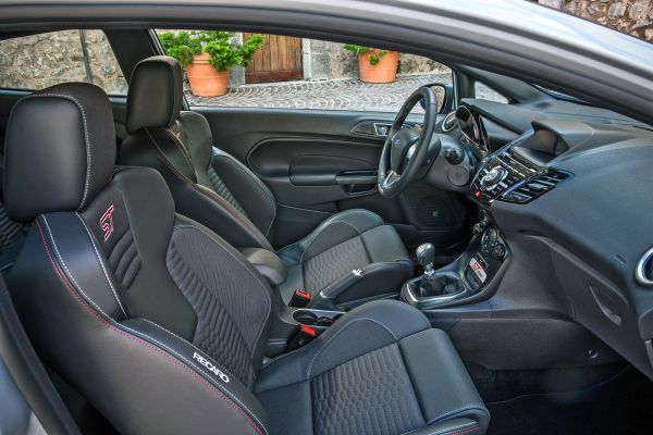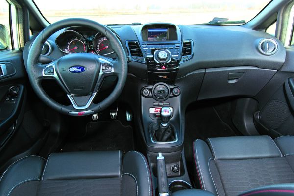 Bár túltöltéssel a 182 lóerős kivitel is képes 200 lóerő leadására, a megpiszkált 1,6-os, turbós benzines már stabilan tudja a megnövelt teljesítményt 5700 helyett 6000-es fordulaton, túltöltéssel pedig 215 lóerőre képes. Nyomatékleadása is megváltozott, a korábbi 240 Nm helyett 290-et tud, az 1600-5000 közötti tartomány helyett 2500-4000 között. A végáttételt is rövidebbre vették, 0-ról 0,2 másodperccel hamarabb éri a 100 km/órát. Ennyivel még nem végeztek, áttervezték a 15 milliméterrel leültetett ST-futóművet, a stabilizátorrudak és a lengéscsillapítók átméretezésével javítottak az útfekvésén, az áttétel lerövidítésével és a kormánycsukló átalakításával pedig közvetlenebb lett az irányíthatóság és javult a visszajelzés középállásnál. A változtatások talán nem is lennének szembetűnőek, ha nem hangolták volna össze az egészet, és szokásuk szerint nem hozták volna ki a legtöbbet a konstrukcióból éppen a modellciklus végére. Mert a Fiestának ebben a formájában már nem sok van hátra a piacon. Kora érezhető az utastérben, ahol az extravagáns dizájn tartja a frontot és tereli el a figyelmet az apró központi kijelzőről, vagy a sokgombos kezelőfelületről. Utóbbi nem feltétlenül hátrány a frissebb Fordok lassú érintőképernyőjével szemben, a menü felépítése, vagy a műszeregység kijelzője azonban előnyére változott az utóbbi időben.
