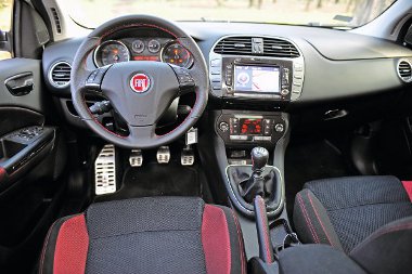 A belső teret illetően igencsak vegyes az összkép, hiszen elöl kifejezetten tágas az autó és a kialakítás is szemrevaló, másrészt vannak kisebb „bakik”, amelyek sajnos zavaróak. A műszerfal erősen tükröződik, a tempomat bajuszkapcsolója pedig olyan alacsonyra került, hogy a kormány magasságát szinte a legfelsőbb állásba kell rögzíteni ahhoz, hogy a térdünk ne érjen hozzá. Ezt leszámítva nemcsak kényelmes, hanem még otthonos is a Bravo. A Sport felszereltséghez járó jól formázott ülések remekül tartanak és hosszú távokon is igen komfortosak. A hátsó sor már kevésbé kényeztető hely az utasoknak, a lábteret illetően ma már sok kompaktautó többet nyújt. A csomagtartó viszont még mindig az egyik fénypontja a Bravónak. A 400 literes alaphelyzeti érték nem csekély egy alsó-középkategóriás modelltől, sőt bővítve (először az ülőlapokat kell felhajtani) 1175 literes rakteret kapunk.