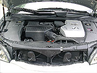 A szokott módon megtekerjük tehát a kulcsot – és semmi nem történik. Indítózhatunk akárhányszor, az eredmény mindig néma csend, csak a motoros állítású kormány emelkedik pozícióba. Egyetlen árva ’Ready’ felirat jelzi csak a műszerfalon, hogy az RX menetre kész. Nos, igen, ugyanígy tréfálja meg a kezdőt a Prius. Alapelvét tekintve megegyezik a két modell hajtáslánca (ld. keretes írásunkat), ám a teljesítményjellemzők jócskán eltérnek. A benzinmotor a maga 211 lóerejével csaknem háromszor olyan erős, mint a Priusban, az első kerekeket hajtó villanymotor pedig 68 helyett 167 lóerős, s akkor még nem szóltunk a 67 lovas hátsó elektromotorról. A rendszer összteljesítménye 272 lóerő – azért csak ennyi, mert a három erőforrás jelleggörbéje nem fedi egymást, cserében viszont teljesítménycsúcs helyett „-fennsík” van, hosszan tartja erejét az RX. Az első villanymotor nagyjából azonos méretű, mint a Priusban dolgozó egység, azonban a 24 százalékkal nagyobb fordulatszámnak, illetve az ezt nyomatékká átalakító redukciósműnek köszönhetően annál közelkét és félszer erősebb. Jelenleg ez a világ legnagyobb fajlagos teljesítményű elektromos erőforrása, nem csoda hát, hogy temperálását vízköpenyre és olajhűtőre bízták. Ugyanígy hűtik a hajtóerő elosztásáért felelős bolygómű motor felőli oldalán elhelyezett generátort, amely különösen magas fordulatszámával hatékonyan tölti az új, 288 voltos (Prius: 202 V) nikkel-metálhidrid akkumulátorcsomagot. A hátsó tengelyt hajtó villanymotor jóval egyszerűbb darab, sem bolygómű, sem folyadékhűtés nem komplikálja. Jelentősége mégis hatalmas, hiszen könnyebb a hagyományos hátsókerék-hajtásmódoknál, s mivel az erőt nem szükséges kardántengellyel hátravinni, jobb helykihasználást és egyszerűbb mechanikus szerkezetet eredményez, amivel a későbbiekben akár egy fronthajtású padlólemezen is könnyedén megvalósítható a négykerékhajtás. A harmadik komponens, a benzines aggregát ismerős darab: az USA-ban forgalmazott RX330 hathengeres V-motorját alakították át a hibrid rendszer igényei szerint. Mivel a maximális környezetkímélés helyett a teljesítményre koncentrált a Lexus, a Prius nyújtott munkaütemű Atkinson-ciklusa helyett maradtak a klasszikus Otto-üzemnél. A VVT-i és a szívó rendszert a speciális igényekhez hangolták: a járművet a villanymotor hozza mozgásba, ezért nem létszükséglet a mélyen ébredő forgatónyomaték, ellenben hogy a V6-os beindításakor elkerüljék a rángatást, az első néhány fordulatot csökkentett kompresszióval teszi meg a motor.