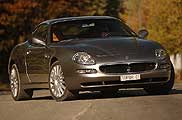 Az Italdesign-Giugiaro formastúdió művészei által megálmodott modellduó (a Quattroporte ruhája a Pininfarina-műhely munkáját dicséri) túlzások nélkül bizsergető hangulatot áraszt. A vezetőhely aurája abszolút egyedi, olyannyira, hogy a nem mindennapi exkluzivitással tálalt 390 lóerőt nem is illő csak úgy, “maflán” lepadlózni. A kurta menetpróbán mindkét típussal autózhattam néhány kilométert, ami természetesen csak felületes információkkal látott el, ám a Spyder és a Coupé egy-két tulajdonsága már a futó kaland után is egyértelművé vált. Hogy a Ferrari 360 Modenából átvett és átdolgozott V8-as atmoszferikus egység erőkészlete mire képes, azt úgyis elárulják a műszaki adatok, megbizonyosodni róluk szinte lehetetlen. Egy azonban fix: a tolóerő mennyei hangorkán aláfestésével hozott zavarba. Gáz-fék, gáz-fék – elvileg olcsó játék, de most másról volt szó. A sprinttudással harmonizálva a Brembo fékrendszer lassítási szavatossága sem hétköznapi, visszaváltásnál pedig a magas fordulatszám melletti őrületes motorfék nem blokkolja a kerekeket.