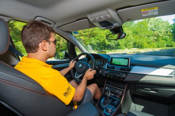 A menetrendszerű megújulás során a látványosabb külső, új applikációk és vezetőtámogató rendszerek mellett a műszaki hátteret frissítették. Többek között a turbófeltöltési technológia, az üzemanyag-befecskendezési nyomás és a hőelvezető rendszer változott, de új főtengelyt is bevetettek. A benzinesek (a 225i xDrive kivételével) a hagyományos, Aisin-féle automatikus váltó helyett (opciós) hétfokozatú, duplakuplungos szerkezetet kaptak. Nemcsak a váltó illik nagyszerűen a maga négy hengerével már nagynak számító 20i motorhoz, hanem maga a motor is jó választás az autóhoz. Bőséges erőtartalékának köszönhetően mindig alacsony fordulaton jár, normál tempójú közlekedés mellett a gyorsan és észrevétlenül kapcsoló váltó 1000-1500-as fordulat között „pihenteti”. Amikor viszont szükség van rá, a 3000-4000-es tartományban BMW-hez méltó lendülettel, lineáris teljesítményleadással hozza mozgásba a vegyes használatban is takarékos Active Tourert. Felépítése ellenére kifejezetten ínyére van a tempós haladás, a viszonylag magas súlypontot eltalált futóműhangolással ellensúlyozták. Feszes és stabil, szűk kanyarokban is kitartóan helytáll, miközben a rugózási komfortról sem kell lemondani. Rosszabb minőségű útburkolaton inkább a futómű felől érkező zaj tűnik fel a különben csendes utastérben. A Minihez mérhető agilitás a hasonlóan direkt kormányzáson is érezhető, a természetesen súlyozott kormánnyal precízen, élvezetesen irányítható. Szinte csak a szokásosnál nagyobb fordulókör szól a márka kínálatában idegen hajtásképlet ellen. Bár a pedálút első szakaszában érzéketlennek tűnik, hatásos és jól adagolható a fékerő. Aki kihasználja a képességeit, értékelni fogja a nagyszerű tartást adó sportüléseket, mert sokat hozzátesznek az ideális vezetési pozícióhoz.