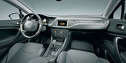 Balsejtelmem be is igazolódik, amikor beülök hátra: a fejtér elég szűkös, az emelkedő övvonal miatt pedig némi bezártságérzésem van. Egyébként a helykínálat nagyvonalú, az ülések kényelmesek. Hát még elöl! Szépen formázott, puha tömésű fotelekben terpeszkedhetünk, sőt, a vezetés fáradalmait opcióként masszázsfunkció enyhítheti –érdekes, hogy kézi állítás esetén nem, motoros mozgatásnál viszont elég mélyre engedhető az ülés. A prémiumszinttől ugyan elmaradnak, de így is kellemesek a felhasznált anyagok, s határozottan tetszetős a műszerfal. Ahogy a C4-esnél, a kormánynak ezúttal is csak a karimája forgatható, a rögzített középrészre telepítették a kezelőszervek javát. Az iménti motívummal jól összecseng, hogy a három kerek órába digitális kijelzőt integráltak, így a mutatóknak csak a hegye látszik és mozog.