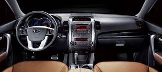 A Sorento egyes stílusjegyei bizony ismerősek lehetnek más márkák modelljeiről, a lámpák és a hűtőmaszk együttesének szamurájkardra emlékeztető alakja például tipikus hondás védjegy. A far kialakításáról nekem a Mitsubishi Outlander ugrik be, de az autó összképe ezen „koppintások” ellenére is egyedi és harmonikus. Belül a Kia új rajzolatú, négyküllős kormánykereke és a Soulból már ismerős rádiókezelő panel fogadja a sofőrt. Az Európában forgalomba helyezett példányokat Dél-Koreában (Hwansung) szerelik össze, a kidolgozás minősége, az illesztések pontossága elsőrangú. Ráadásul a gyáriak most különös figyelmet fordítottak a felhasznált műanyagok minőségi hatására is, ahol gyakran jár a szemünk és a kezünk, ott puha tapintású, kellemes felületű plasztikelemekkel találkozhatunk.