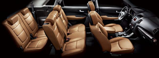 Az első ülések nagyon kényelmesek, a második sorban pazar, az utolsóban pedig megfelelő a helyA középkonzol könnyedén áttekinthető, a kapcsolók nagyok, a piktogramok jól leolvashatók. A vezető az elődhöz képest jóval szélesebb tartományban tudja állítani az ülését és a kormányt is, utóbbi magasságában 40, tengelyirányban pedig 30 mm-es „skálán” mozgatható. Elöl valódi fotelekben foglalhatunk helyet, az ülések tömése azonban németesen kemény, így hosszabb távon sem kell derékzsibbadástól tartani. A széles első könyöklő alatti óriási rekesz gond nélkül képes elnyelni nagyobb holmikat, például táskákat, vagy akár több félliteres palackot is. A manuális váltójú darabokban hagyományos kézifékkar található, míg az automatákban lábbal aktiválható és oldható pedálos rendszer van. A második sorba langaléták is bátran behuppanhatnak, a rendelkezésre álló hely pazar, ráadásul a támlák dőlésszöge még szabályozható is. A középkonzol hátsó részén 12 voltos ajzat kapott helyet, a B-oszlopokban pedig szellőzőrostélyokat alakítottak ki. Az első ülések hátoldalát könnyen tisztán tartható műanyaggal borították, melyre rögzítőháló is került az apróbb tárgyaknak, újságoknak. Opcióként harmadik üléssort is kínálnak a Sorentóhoz, aminek használhatóságával szemben komoly kételyeim voltak – általában ezek a szükségülések maximum gyerekeknek jók, felnőttek itt nem szoktak elférni.