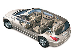 E kedvező körülmény jórészt az építőszekrény-elv alkalmazására vezethető vissza: a légrugós futómű, az állandó 4×4-es hajtáslánc és az ülések egy része az M-osztálytól származik. Teljesen új viszont a „három D”, a design, a dinamika és a dimenziók jegyében tervezett karosszéria, amely a limuzinok, a kombik, az egyterűek és a szabadidő-terepjárók jegyeit egyesíti magában. Igaz, ha kihasználjuk mindegyik ülőhelyet, a leghátul maradó csomagtér kiskocsis méretre zsugorodik (pótkerék nincs), ha viszont csupán az első kettőt hagyjuk alaphelyzetben, akkor 2385 liternyi térfogat várja a poggyászt – tériszonyosok csak óvatosan kukkantsanak be a gombnyomásra önműködően felnyíló és lecsukódó