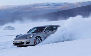 Ezúttal a Porsche Panamera volt a demonstráció tárgya, mindhárom aktuális kivitelében: mint 400 lóerős, hátsókerék-hajtású Panamera S, valamint ugyanilyen motorú, de összkerékhajtású Panamera 4S, továbbá szintén 4×4-es, de 500 lóerős Panamera Turbo. Valamennyit szöges gumiabroncsokkal szerelték fel. Ehhez megjegyzendő, hogy ezek a kerekek 15 és 30%-os szlip (csúszás) között érik el maximális talajfogásukat. A sebességváltó működhet automatikus és manuális módban is – ennek itt nincs nagy jelentősége, mert a pályák végigautózhatók második-harmadik sebességfokozatban. Fékezni gyakorlatilag nem kell, csupán a kanyargós pálya egy-két pontján, no meg a boxutcának megfelelő biztonsági zónában, így nem sok munkájuk akadt a cintányérnyi tárcsáknak.