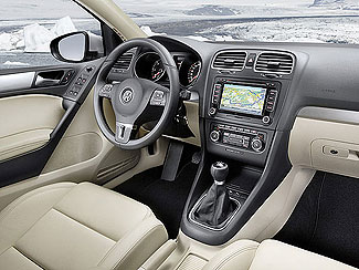 Az állandó méretnövekedések és a fellazuló kategóriahatárok idejében említésre méltó, hogy a Golf csupán 5 mm-rel nagyobb elődjénél, ezzel az értékkel a teljes hossz 4199 mm-re rúg. A 2578 mm-es tengelytávolság és a 350 literes csomagtér is maradt a régiben, hiszen egy kompakt autó mégse legyen drabális méretű. A volán mögött nagyon kellemes atmoszféra fogadja a vezetőt, az egész beltér kialakítása letisztult és igényes. A kormánykerék, a műszerek, a klímakapcsolók mind-mind a Passat CC-t idézik, így aztán tényleg nem meglepő, hogy kompaktoktól eddig szokatlan, részletgazdag utastérrel szembesülünk. Jól döntöttek amikor elhagyták a hosszú úton idegesítő, szemet bántó kék műszerfal-világítást, helyette kellemes, fehér fény ragyogja be az órákat. Igen sok autógyártó nagy hangsúlyt helyez arra, hogy a beltérben felhasznált anyagok ne csak látványra legyenek üdítőek, hanem még tapintásra is jó érzéssel töltsék el az embert. Nos, a legtöbb műanyag itt puha, rideg, kemény borítással csak elvétve találkozunk. Az illesztési hézagok is pontosak, ami a finoman működő kapcsolókkal együtt nagyban hozzájárul ahhoz, hogy egy nagy gondossággal összeszerelt prémiumautóban érezzük magunkat.