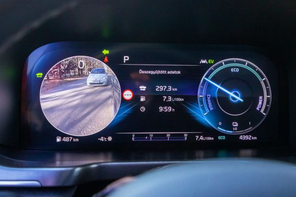 És milyen vezetni? Pihentető. A rugózás nagyon finom, a Sorento méltóságteljesen veszi a fekvőrendörőket és útegyenetlenségeket, egyedül a keresztbordákon fogy el a tudománya. A modellváltás nagy újdonsága, a hibrid hajtáslánc kapcsán viszont vegyesek a benyomások. Az volt az érzésem, hogy ahhoz képest, hogy egy full-hibrid autóban ülök, az 1,6 literes, turbós benzinmotort keveset pihenteti a rendszer, sík úton is szerénynek tűnt az a távolság, amit tisztán villanymotorral tudunk megtenni. A másik, hogy hiába van 230 lóerőnk, emelkedőn sokszor indokolatlanul magas a fordulatszám – nyilván ebben szerepet játszik a hatfokozatú automatikus váltó is. Egyébként ha önmagában a teljesítményt nézzük, nem lehet panaszunk, minden forgalmi szituációban bőséges az erőtartalék, és azt is el kell ismerni, hogy a benzinmotor finoman indul be. A takarékosság terén domborít igazán nagyot a HEV verzió, a 7,4 literes tesztátlag több mint tisztességes egy ilyen méretű és teljesítményű autótól, vagyis ebből a szempontból tényleg alternatívája lehet a dízelnek. De csak akkor, ha nem akarunk nagyobb utánfutót húzni, a hibridre ugyanis 2500 helyett csak 1650 kg-os vontatmányt akaszthatunk.