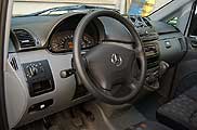 Állítható magasságú és dőlésű ülés, két irányban állítható volán – itt bárki jól elhelyezkedhet! Először kissé feleslegesnek véltem a bal oldali kartámaszt, hiszen van megfelelő felület az ajtón is, de aztán megtanultam becsülni. Nagypapa-karosszékünkből teljes komfortban irányítjuk az eseményeket. Nem tudtam viszont megszeretni az Y alakú szélvédőoszlopot, ami sokat elvesz a kilátásból. Minden ilyen autónál újra és újra leírom, hogy itt a célszerűségből áldoztak fel valamennyit a design oltárán. A szervokormány és a kocsi kanyarodási viselkedése elsőrangú, a menetstabilizáló és a többi rendszer még jobban erősíti a biztonságérzetet. A fék kimondottan erős, elsőre kissé harapósnak tűnik, teljes terhelésnél is feladata magaslatán áll. A váltó könnyen jár, a széles sávban erős motor jóvoltából azonban nem kell sűrűn kapcsolgatni. 60 km/óránál szépen elgurulunk hatodikban, hogy aztán simán felgyorsítsunk 160-ra. Nem bánnám viszont, ha halkabb lenne a motorhang, jobban lehetne élvezni a rádió remek hangminőségét. A ködlámpás fényszóró és a pillangó-ablaktörlő éppúgy jelest érdemel, mint a koszolódási zóna felett, magasan elhelyezett hátsó lámpa. Csak arra nem gondoltak a tervezők, hogy lökhárító-lépcsőfok híján nehéz lesz lekaparni a jeget a kirakatüvegnyi szélvédő közepéről. Ciklusidejének végére a régi Vito is kiforrott, ajánlható jármű lett. Névutódja sokkal modernebb, minden tekintetben felértékelt típus. Ára miatt aligha lesz tömegmodell az útjainkon, ám aki mellette dönt, mégiscsak a legjutányosabban kapja meg az elismert Mercedes-minőséget.