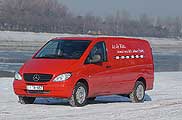 A járművet vezetve inkább az volt az érzésem, hogy kis Sprintert, nem pedig új Vitót vezetek. Egyrészt nagyobb a régi Vitónál, másrészt a hosszanti hajtáslánc és a hátsókerék-hajtás is ezt a hatást erősíti. Ami az utóbbit illeti, nagy terhelésnél előny, üres jármű esetében inkább hátrány – de a Vito üresen is meglepően jól mozgott a télies utakon. A hatfokozatú váltó műszerfalon elhelyezett joystickje éppolyan jól kézre áll, mint a nagy testvérben, s ahhoz hasonlóan itt is előny, hogy kiszálláshoz át lehet lépni a járda felőli oldalra. A középső ülésen viszont csak mellszobor helyezkedhet el kényelmesen, mivel a lábtér eléggé rövid.